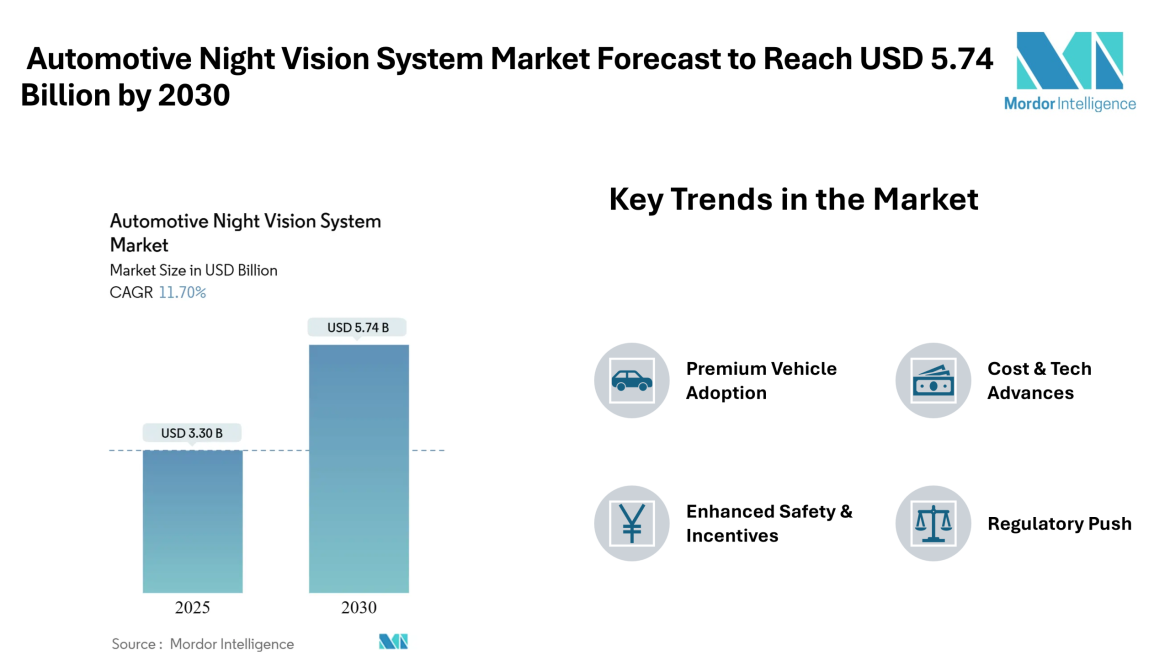 Automotive Night Vision System Market Forecast to Reach USD 5.74 Billion by 2030, Driven by ADAS Mandates and Premium Vehicle Adoption – Mordor Intelligence