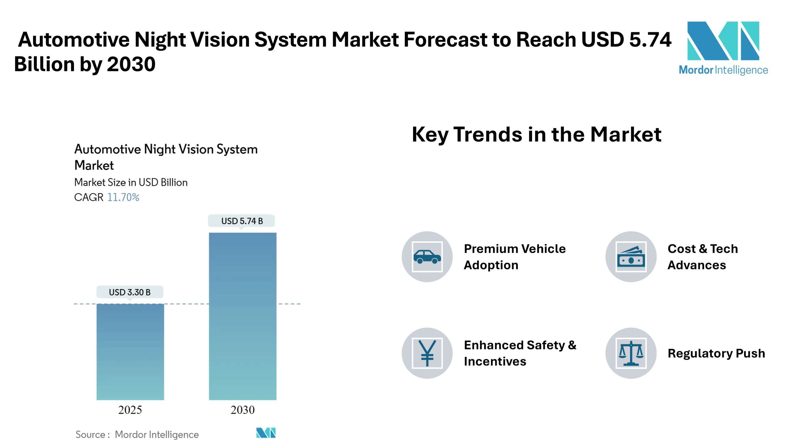 Maison Communiqués de presseAutomotive Night Vision System Market Forecast to Reach USD 5.74 Billion by 2030, Driven by ADAS Mandates and Premium Vehicle Adoption – Mordor Intelligence