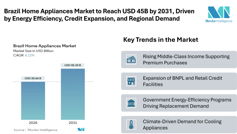 Brazil Home Appliances Market to Reach USD 45.33 Billion by 2031, Driven by Energy Efficiency, Credit Expansion, and Regional Demand