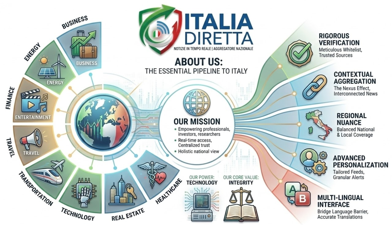 We believe that in a globalized economy, understanding Italy requires access to immediate information across the spectrum of society and industry. Whether you are an international investor seeking financial data, a policymaker analyzing energy trends, a technologist tracking Milanese startups, or a traveler planning a journey through Tuscany, the lag between an event and your awareness of it represents a lost opportunity.