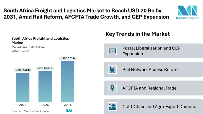 South Africa Freight and Logistics Market to Reach USD 20.59 Billion by 2031, Amid Rail Reform, AFCFTA Trade Growth, and CEP Expansion