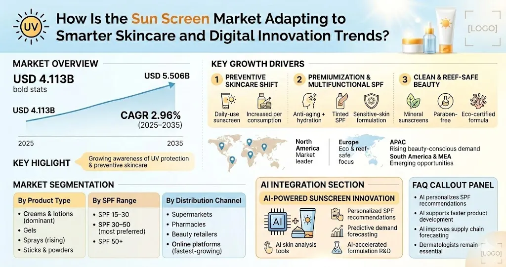Home Press ReleasesSun Screen Market Set to Grow at 5.21% CAGR Through 2035 Driven by Rising Skin Health Awareness