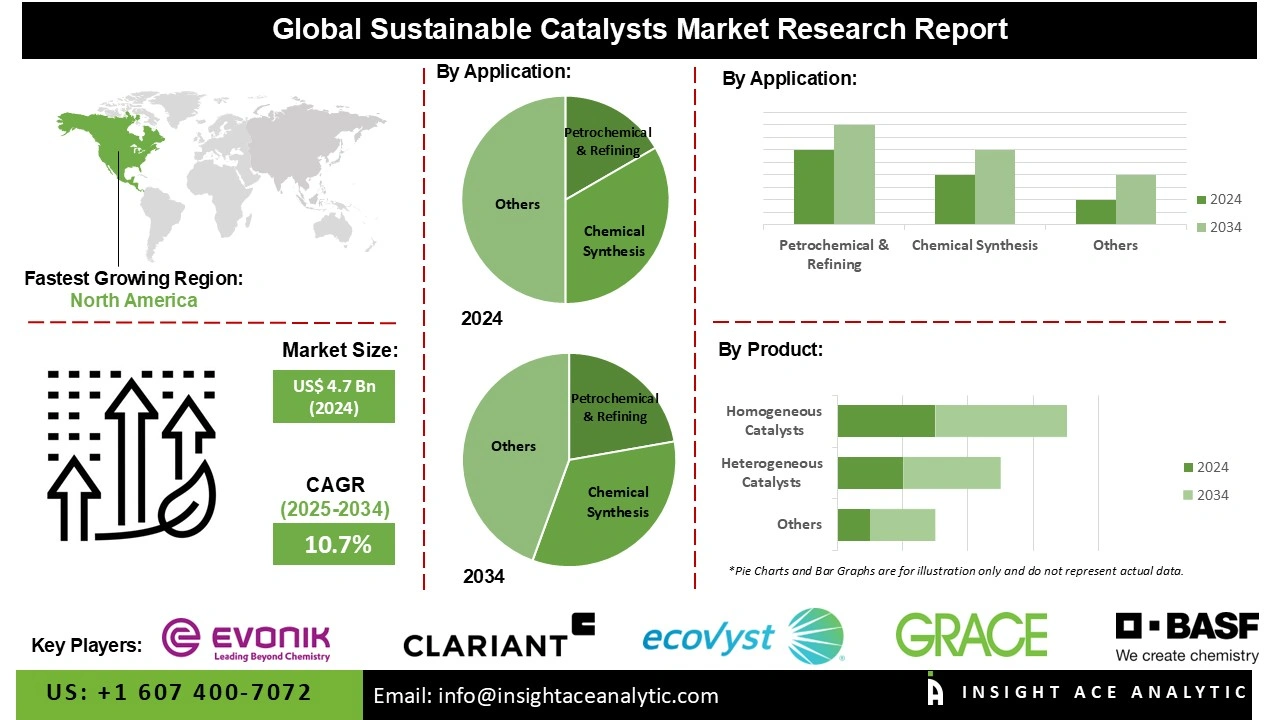 InsightAce Analytic Pvt. Ltd. announces the release of a market assessment report on theGlobal Sustainable Catalysts Market Size, Share & Trends Analysis Report By Product Type (Homogeneous, Heterogeneous, and Biocatalysts/Enzymatic Catalysts), Application (Environmental Catalysis, Petrochemical & Refining, Renewable Energy, Chemical Synthesis, and Polymer & Plastic Recycling),- Market Outlook And Industry Analysis 2034″
