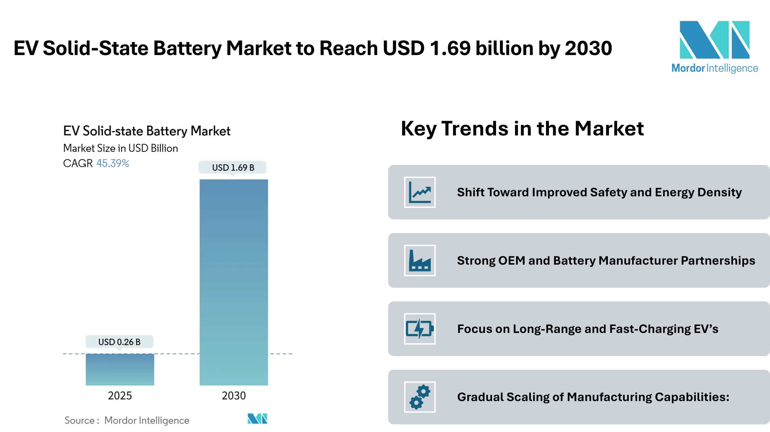 Maison Communiqués de presseEV Solid-State Battery Market to Reach USD 1.69 billion by 2030, Driven by Safety-Focused Designs and OEM Integration – Mordor Intelligence