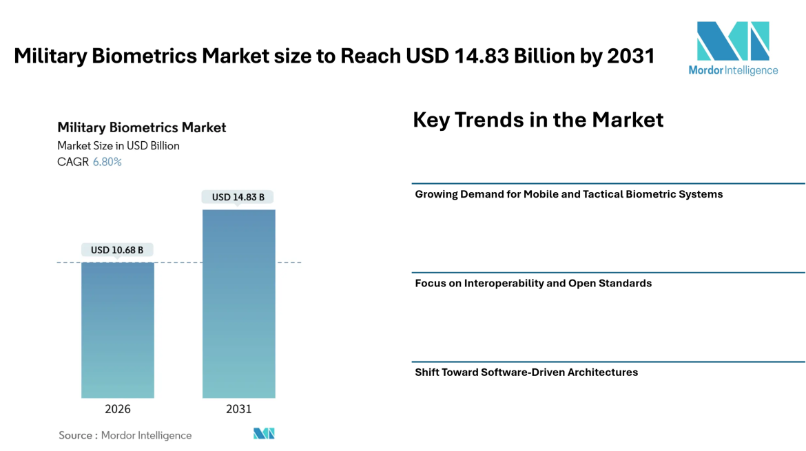 According to Mordor Intelligence, the military biometrics market size is expected to reach USD 10.68 billion in 2026 and grow further to USD 14.83 billion by 2031, reflecting consistent market growth over the forecast period. This expansion is supported by rising concerns around cross-border threats, irregular warfare, and the need for secure authentication systems in sensitive operations.