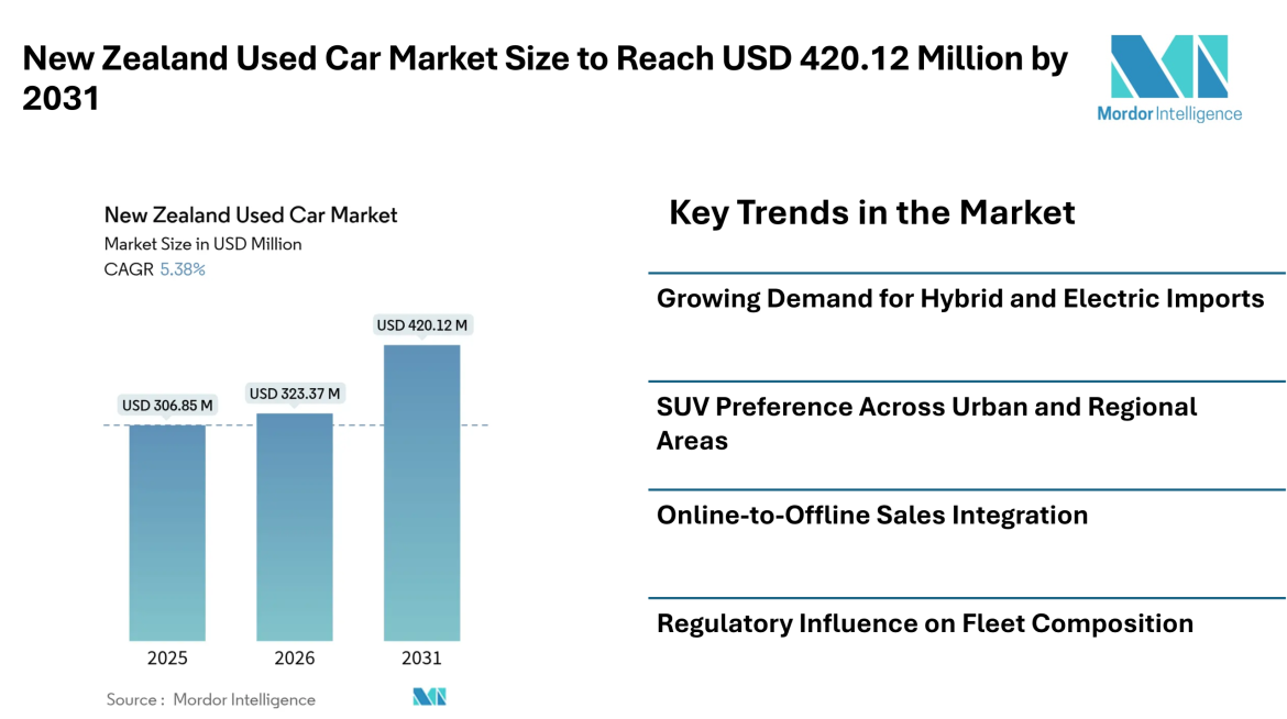 New Zealand Used Car Market Size to Reach USD 420.12 Million by 2031 | Digital Retailing, Hybrid Imports, and SUV Demand Shape Market Forecast – Mordor Intelligence