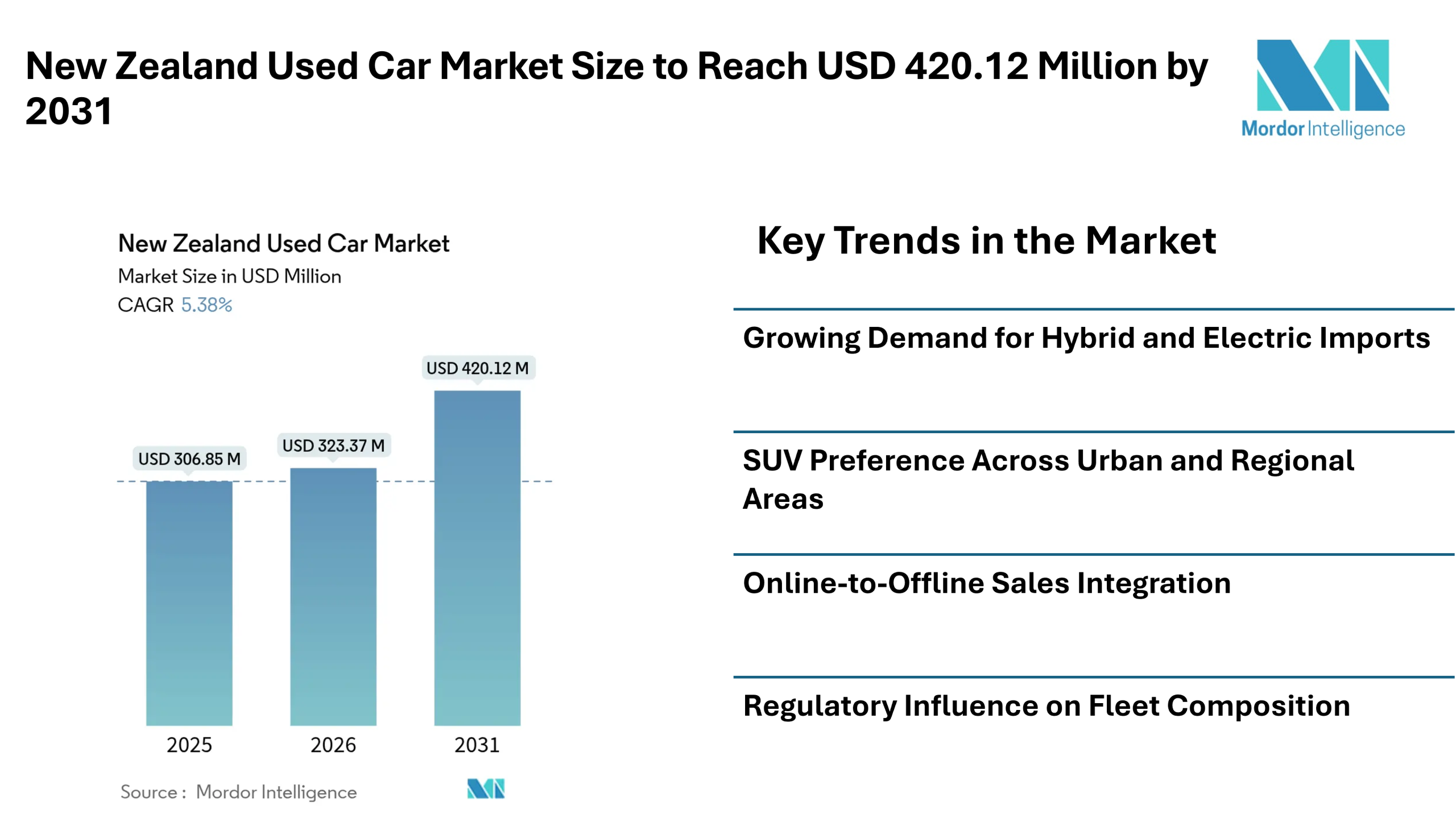Maison Communiqués de presseNew Zealand Used Car Market Size to Reach USD 420.12 Million by 2031 | Digital Retailing, Hybrid Imports, and SUV Demand Shape Market Forecast – Mordor Intelligence