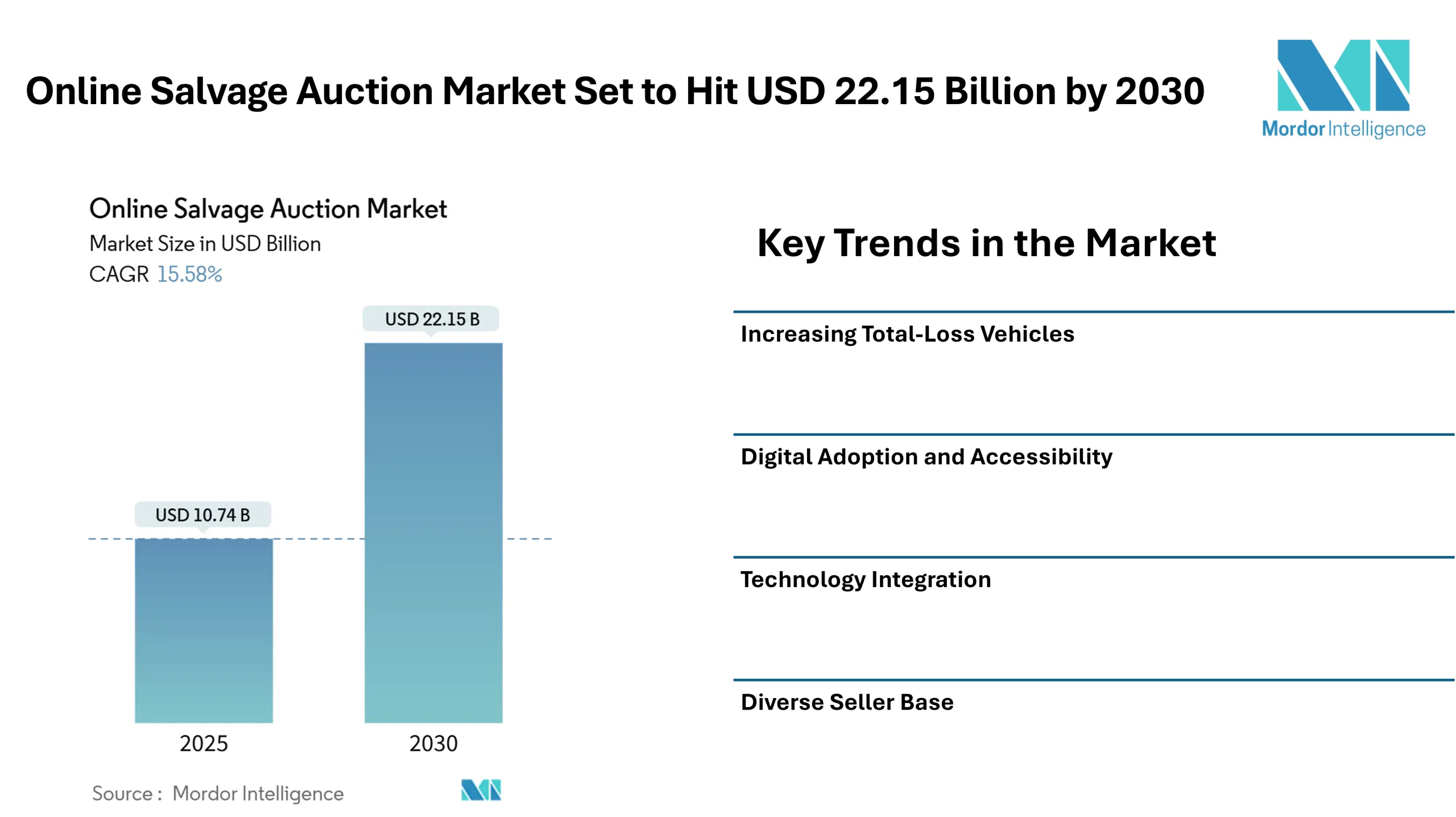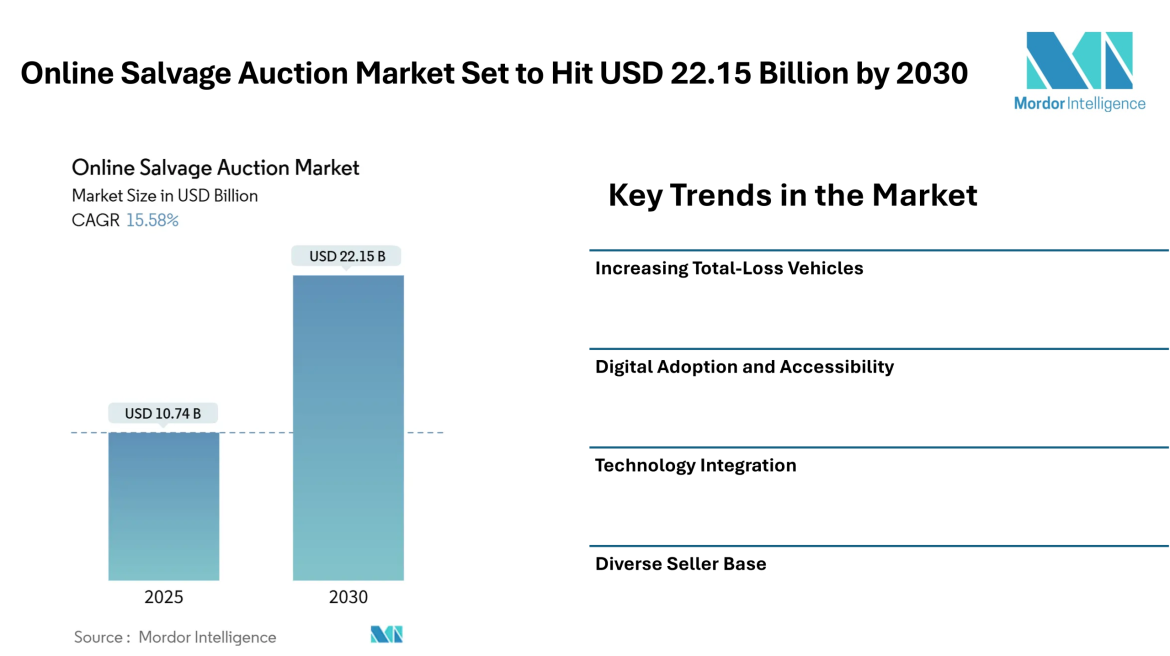 - Increasing Total-Loss Vehicles: Higher repair costs and complex vehicle electronics are contributing to rising total-loss rates, ensuring a steady supply of vehicles for online auctions.