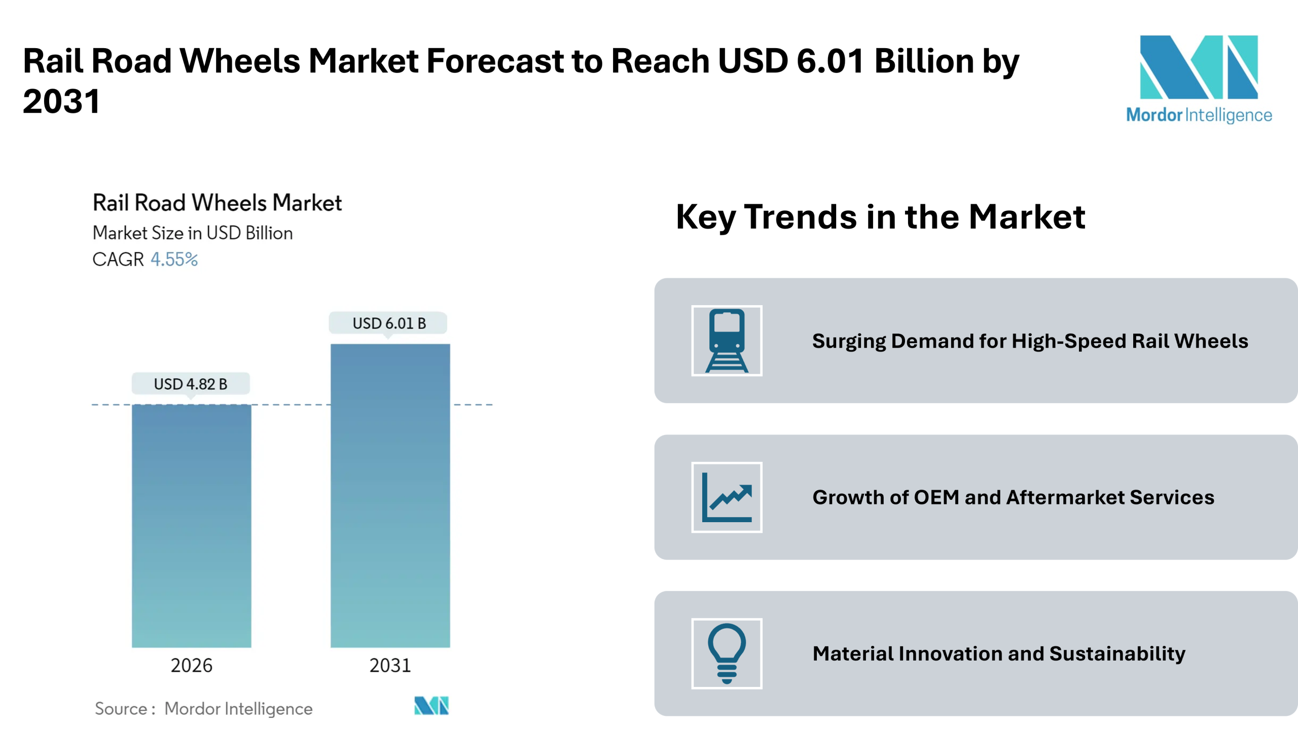 Material Innovation and Sustainability: While rolled carbon-steel remains widely used, the market is seeing a gradual shift toward composite and hybrid materials. These alternatives offer lighter weight, better noise reduction, and improved corrosion resistance. Additionally, environmental considerations are driving adoption of low-carbon wheels, particularly in Europe and North America. This trend aligns with operators’ efforts to meet regulatory and sustainability targets.