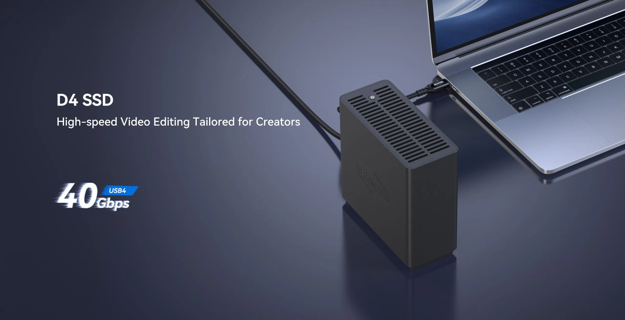 Le D4 SSD utilise des SSD M.2 NVMe, ce qui le rend compact, léger et facile à transporter. Son design innovant de refroidissement actif par convection verticale, combiné à un ventilateur intelligent de deuxième génération à contrôle thermique et à quatre points précis de surveillance de la température, garantit un maintien au frais même en pleine charge. En veille, le niveau sonore descend jusqu’à 19 dB, assurant un environnement utilisateur calme et confortable.