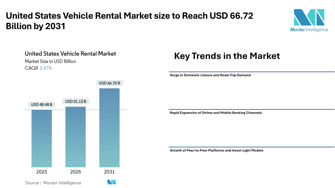 United States Vehicle Rental Market size to Reach USD 66.72 Billion by 2031, Driven by Digital Bookings, Leisure Travel Demand, and Fleet Electrification Trends – Mordor Intelligence